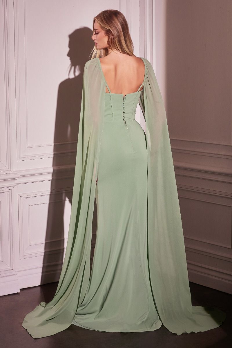 Plongez dans l'élégance intemporelle avec cette robe en chiffon au design raffiné. Dotée de fines bretelles et d’un corset structuré qui sublime la silhouette, elle se distingue par ses manches longues façon cape qui tombent jusqu’au sol, apportant une touche aérienne et majestueuse. Son dos lacé permet un ajustement parfait.